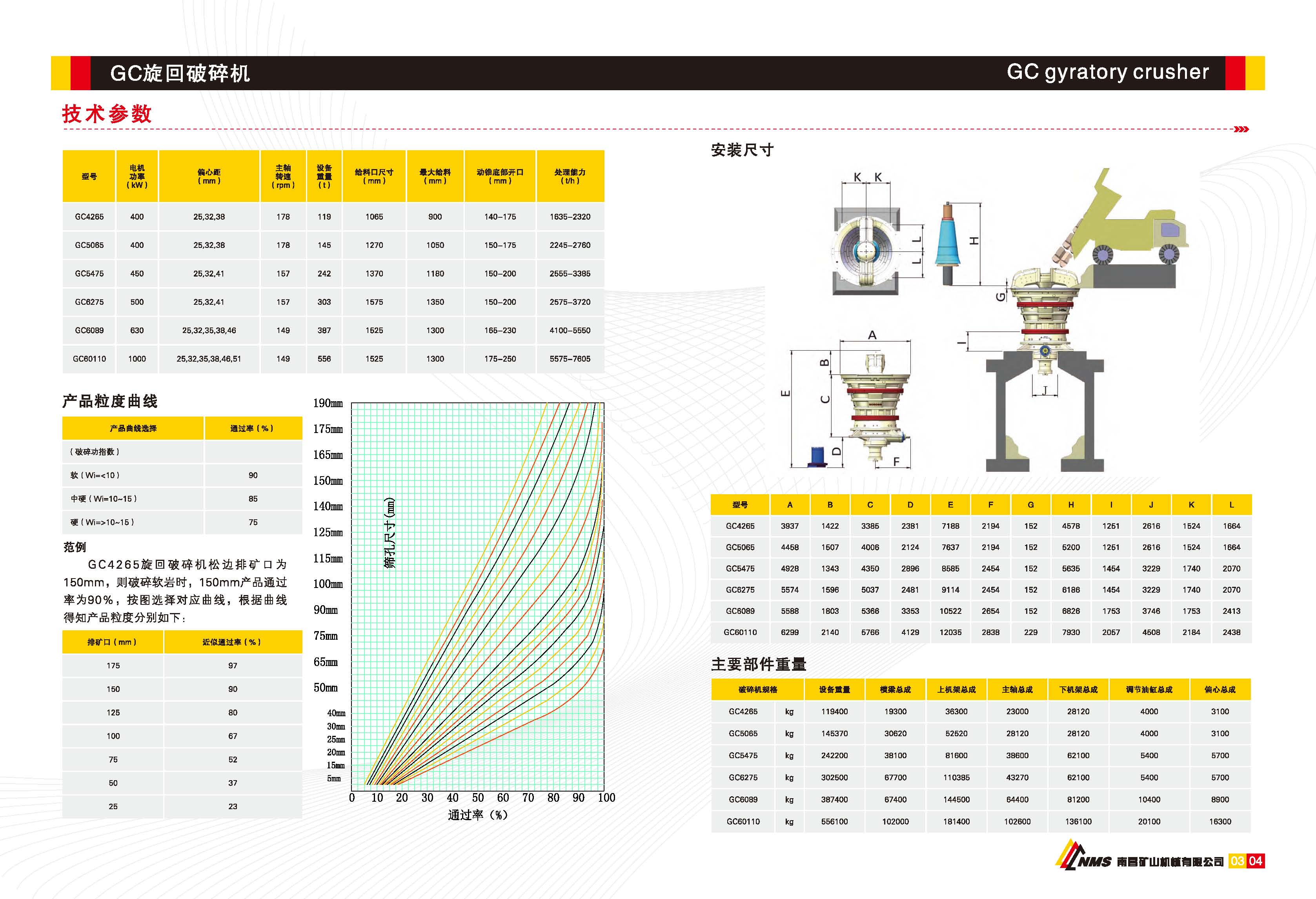 GC series gyratory crusher is used in the primary crushing of various rocks, features as follows: large capacity, higher crushing efficiency,larger reduction ratio, even product size, lower energy design, etc., which is fit for the application of larger capacity.